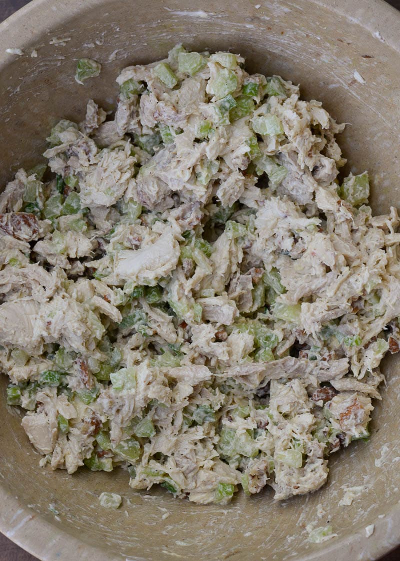 The best thing about chicken salad is how easy it is to make! Put all your ingredients in a bowl, mix until well mixed, then chill until you’re ready to serve. You can sprinkle more pecans, green onions, or fresh herbs on top as garnish, too. If you’re measuring out your ingredients beforehand, it can be helpful to refer to this guide on How Many Ounces in a Cup, especially if you’re using canned chicken. This guide is easy to follow and printable, so you can refer back to it any time you need it!
